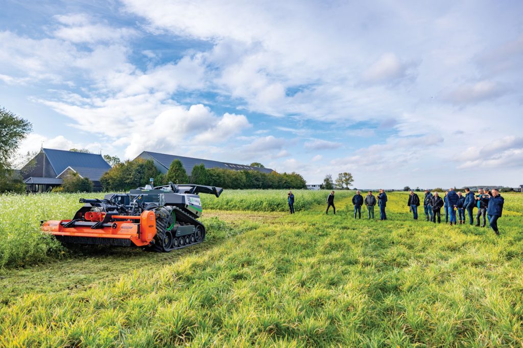 Voor de volgende stap bij groenbemesters, het onderwerken, heeft Hoogland BV een autonome trekker laten aanrukken. De AgXeed T2-rupsvariant, waarmee Van der Maar Mechanisatie naar de demomiddag komt, kan veldwerkzaamheden zelfstandig uitvoeren. Met een aftakas en standaard driepuntshefinrichting kunnen standaard werktuigen aan deze veldrobot worden gekoppeld. Een 156 pk Deutz-motor vormt de energiebron. Vervolgens worden de rupsbanden en de aftakas elektrisch aangedreven. Een hydraulische pomp verzorgt het gebruik van de hefinrichtingen.