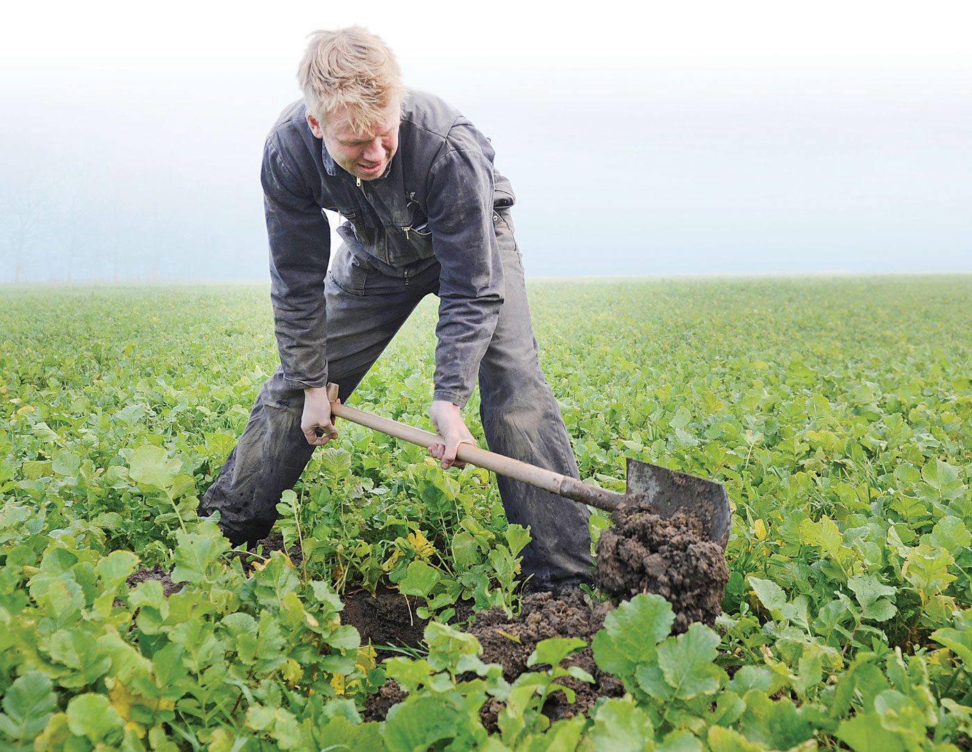 Hij is deze koude maar zonnige decemberdag druk in de weer, akkerbouwer Simon Wilms. Met een schop graaft hij een profielkuil midden op een perceel met groenbemester. Hij kan dan, samen met z’n teeltbegeleider van TTW, zien of er sprake is van bodemverdichting of dat de groenbemester juist zorgt voor meer lucht en structuur in de bodem, zodat hij in 2026 nog meer en betere pootaardappelen van z’n akkers kan halen. Dit jaar waren de opbrengsten in de pootaardappelen erg goed, met gemiddeld 55 ton bruto en uitschieters naar zelfs 70 ton per hectare. Voor wat betreft de kwaliteit was het jaar uitdagender, met een hoge luizendruk en hier en daar wat verlagingen in klasse als gevolg van virus. Maar ontevreden is Wilms zeker niet.